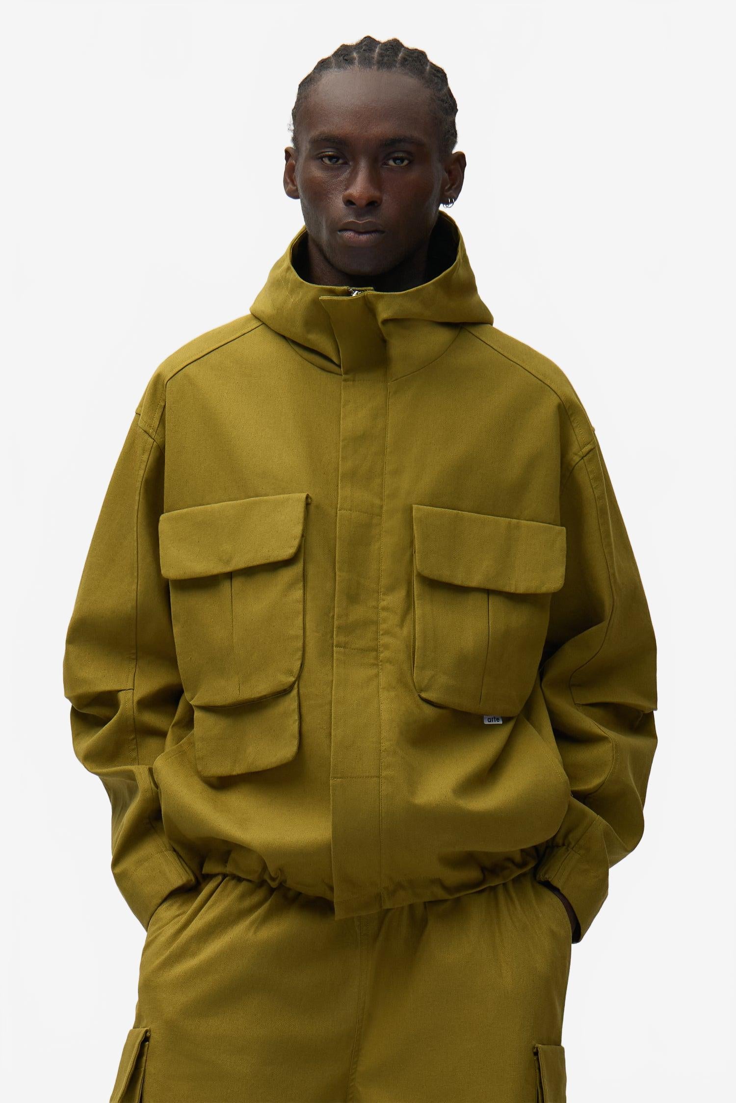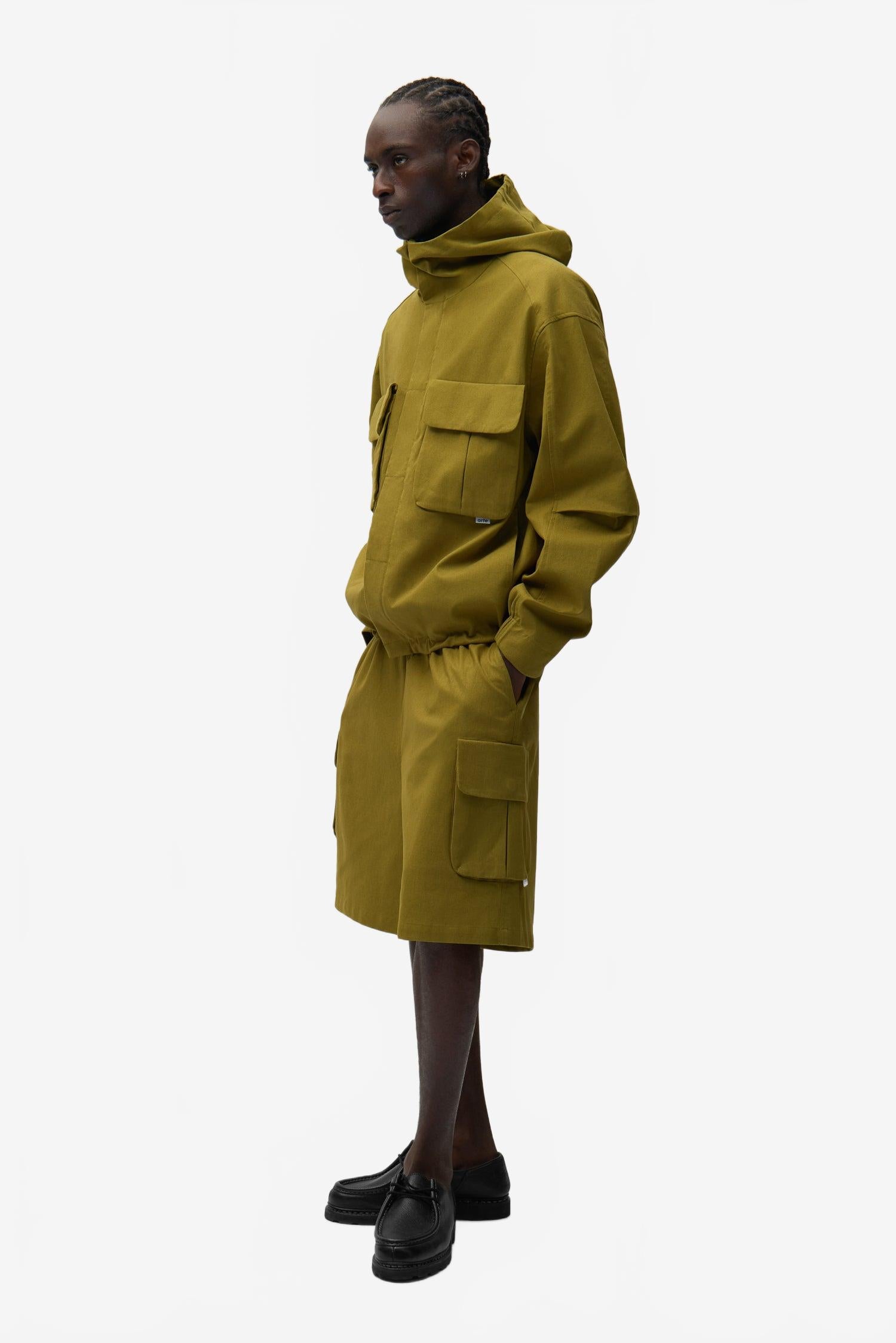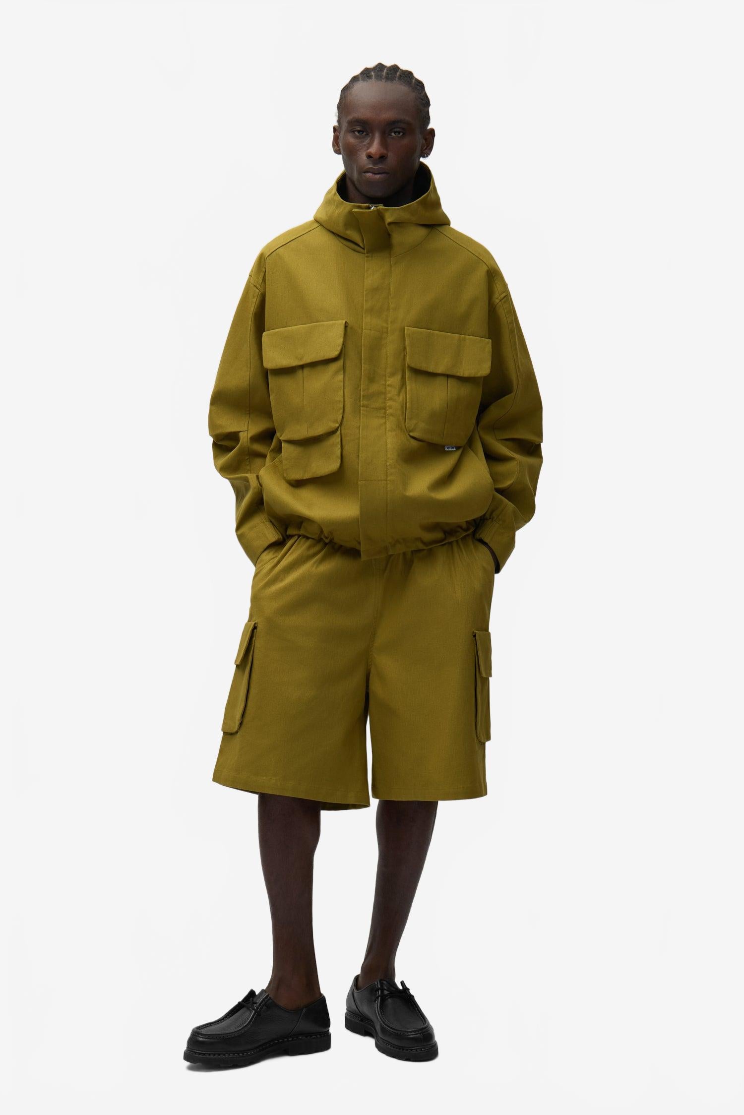 Elle se distingue par ses multiples poches cargo sur la poitrine, ainsi que par ses poches discrètement dissimulées sur les manches, apportant une dimension à la fois fonctionnelle et contemporaine.